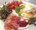 Spejlægburger m bønnefritter og skinke - Low FODMAP