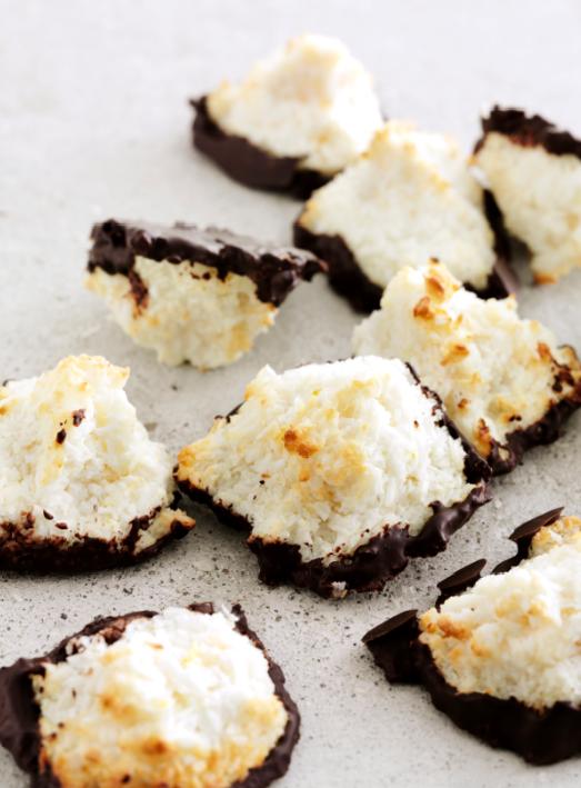 Form 14 kokostoppe med en spiseske eller med hænderne og bag dem i ovnen 10 min, 160 grader (varmluft ovn).