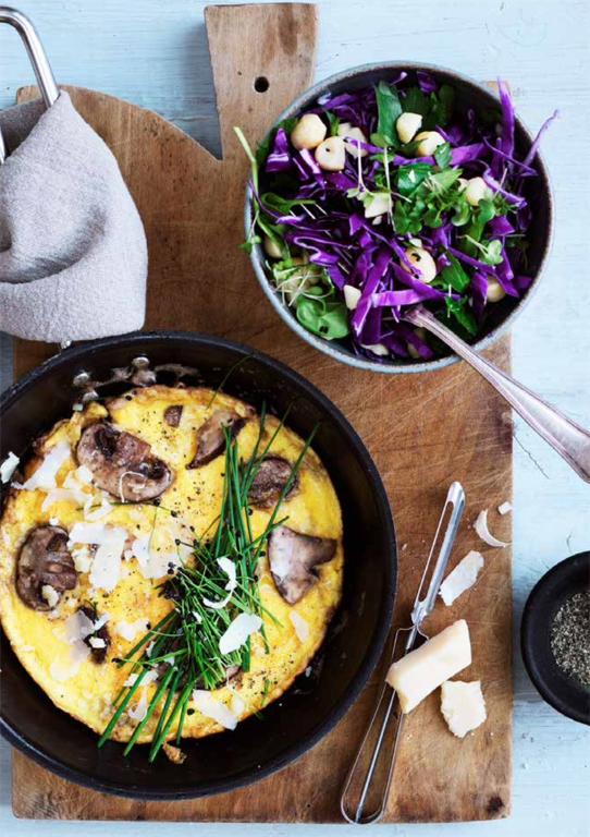 Omelet med champignon, gedeost og morgenkål